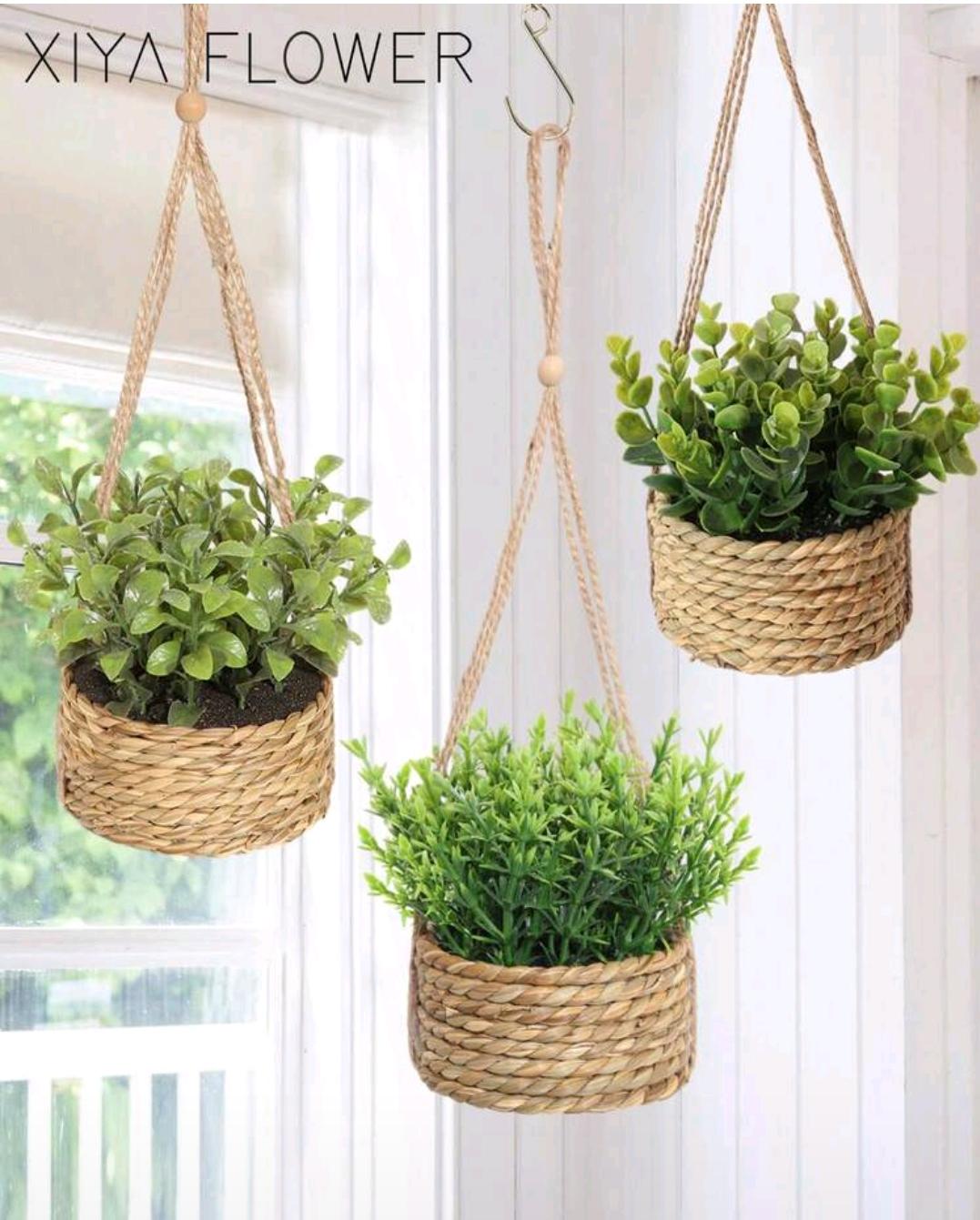 1pc Artificial Rattan Flower Pot, B-Shaped, Seaweed Rope, 14cm (5.51in), Pot Size: 9.5×9.5x5cm (3.74×3.74×1.97in), Green, PE Material, Polyester Fiber, Suitable For Valentine’s Day, Easter, Spring/Summer Decor, Desktop Decor, Dorm/Office Decor, Party, Birthday, New Year, Spring Festival, Home Decor, Green Decorative Item