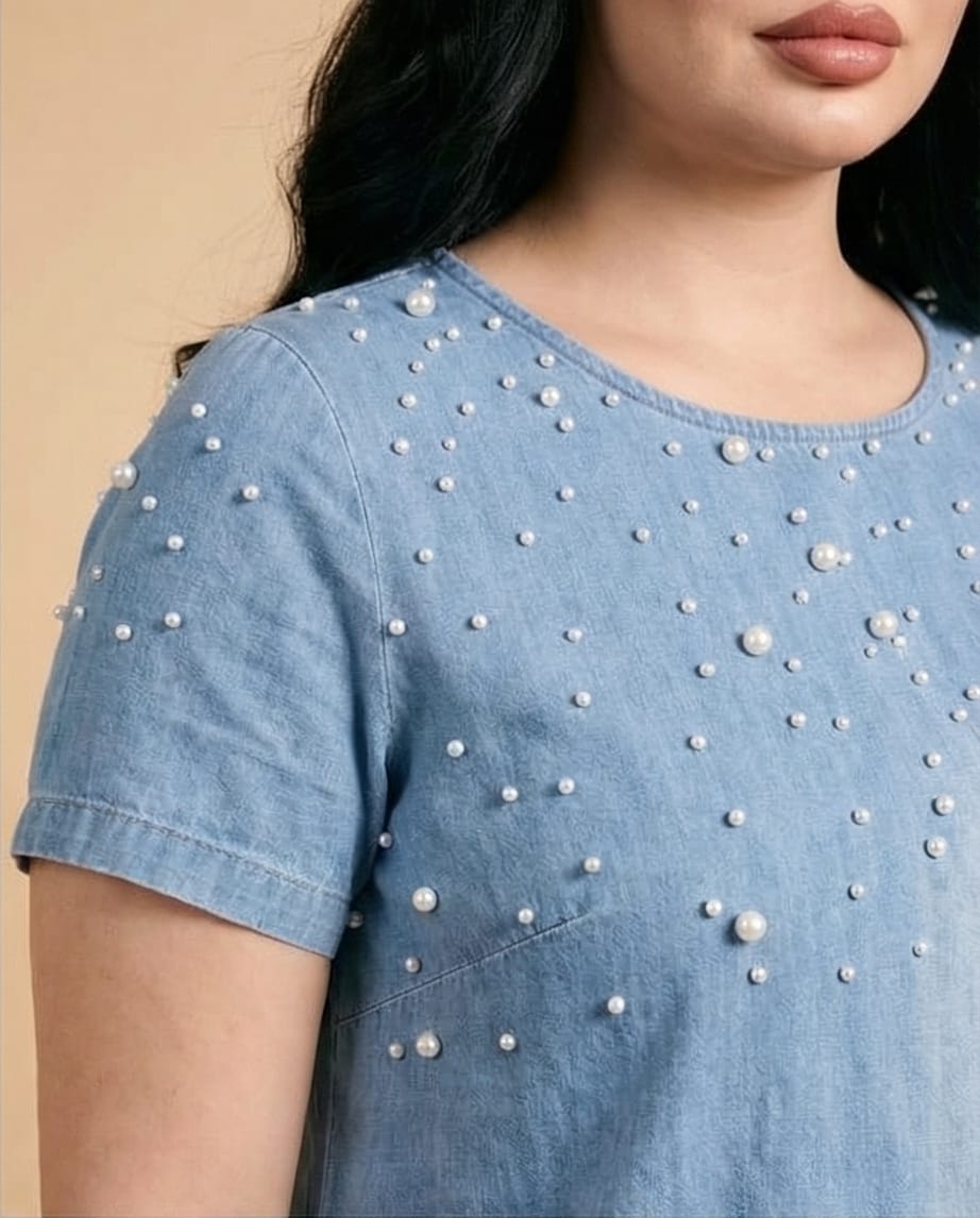Denim Dress & Pearls